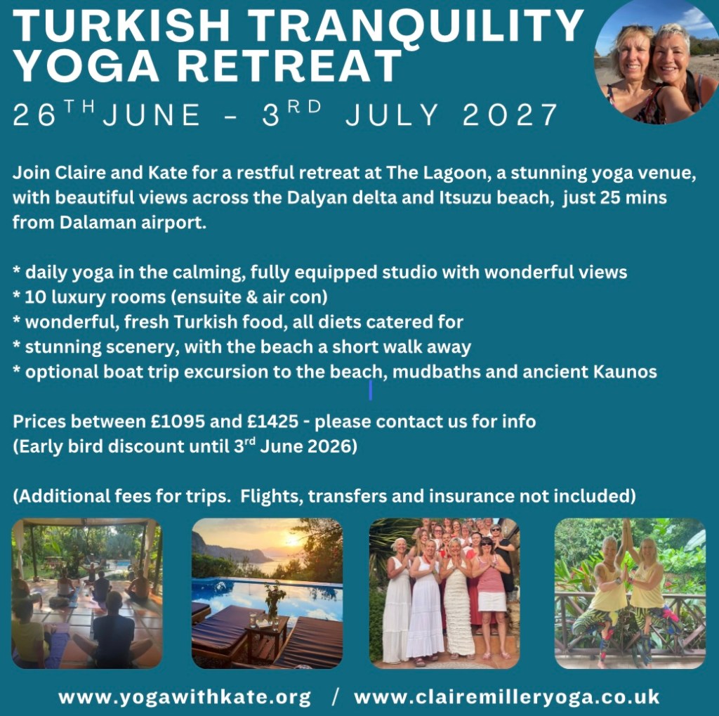 Join Kate and Claire for a super relaxed week of yoga, relaxation, excellent accomodation, delicious food and good company
