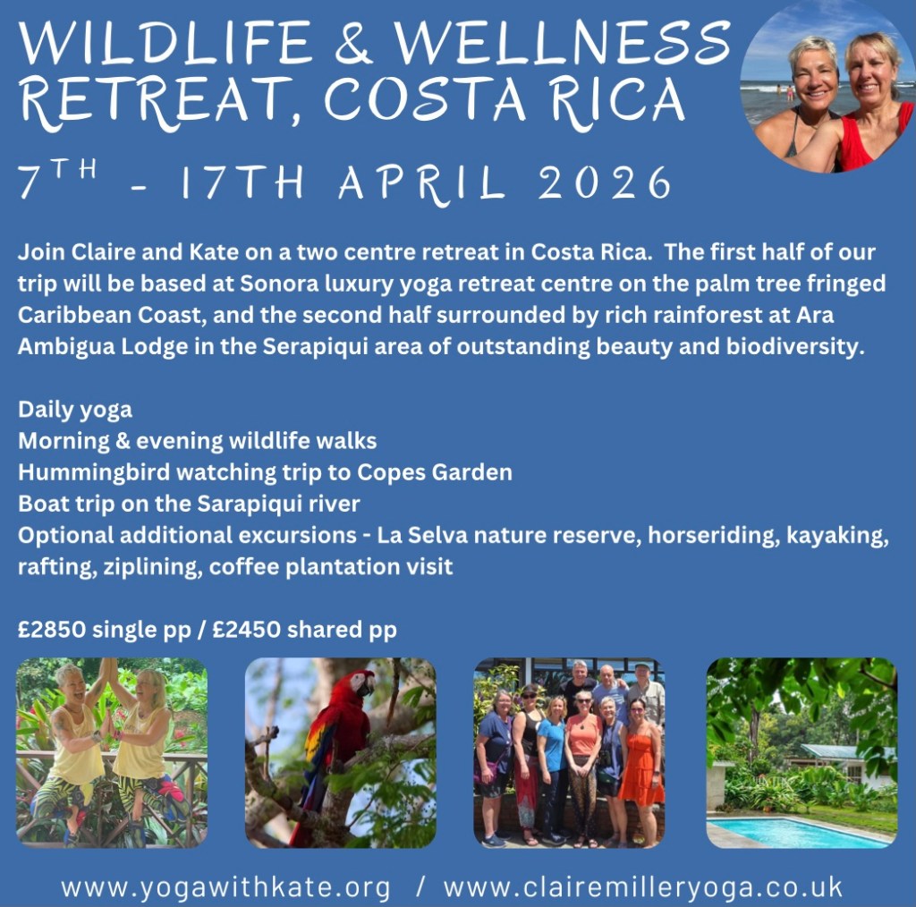 Join Claire and Kate on a two centre retreat in Costa Rica. The first half of our trip will be based at Sonora luxury yoga retreat centre on the palm tree fringed Caribbean Coast, and the second half surrounded by rich rainforest at Ara Ambigua Lodge in the Serapiqui area of outstanding beauty and biodiversity