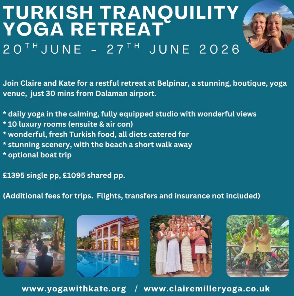 Treat yourself to a seven night yoga retreat in June 2026 with Claire and Kate, both experienced teachers.