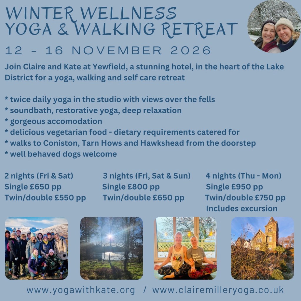 Treat yourself to a Winter Wellness Retreat in the wonderful Lake District, with Claire and Kate. All too often we feel unable to give ourselves a break from daily life, but a retreat can offer a valuable opportunity to recharge your batteries, which benefits not just you, but everyone around you.